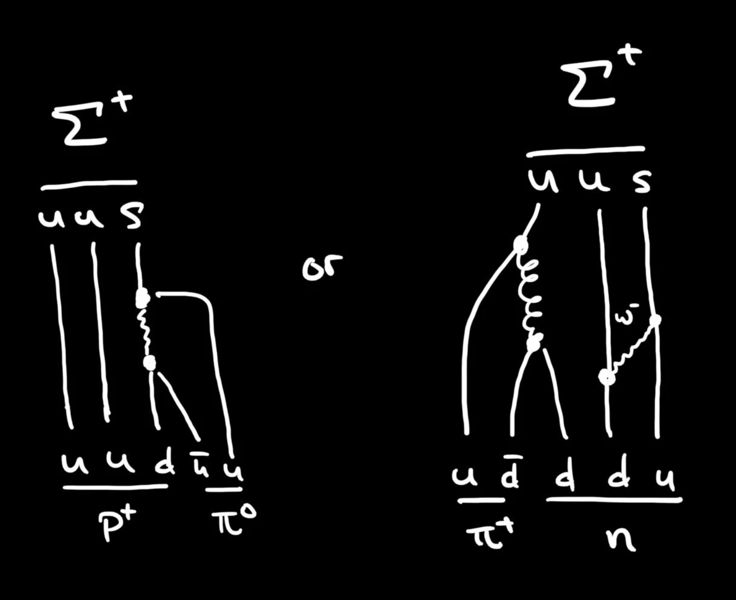 Amusingly, the other 1% of stuff looks exactly like the antiparticle versions of the rare Σ- decays. You know, antimuons, positrons and neutrinos. Notably, there’s also a rare Λ0 with positron decay:Σ+→Λ0+e+