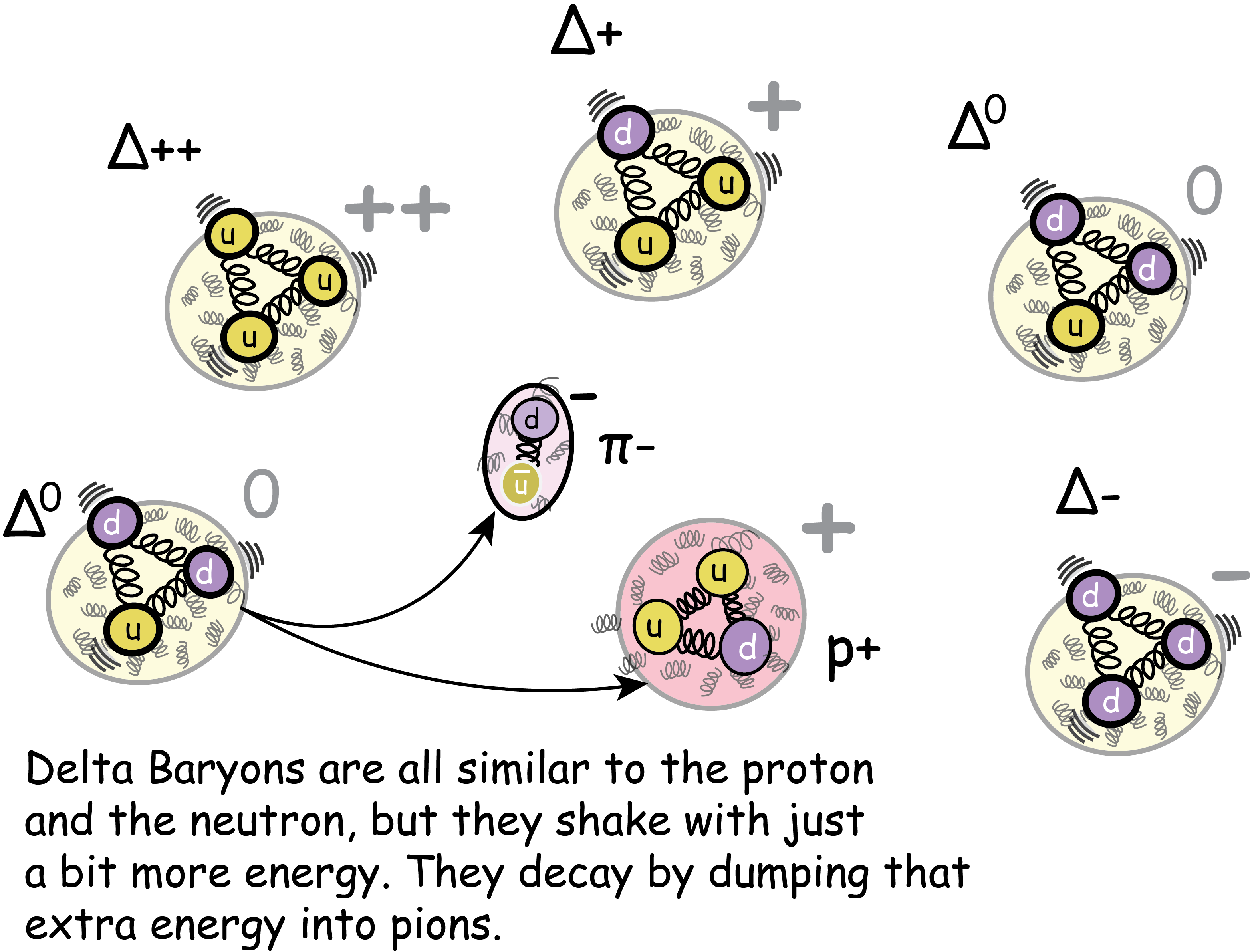 The Δ baryons are heavy and unstable, they decay to particles like the proton.
