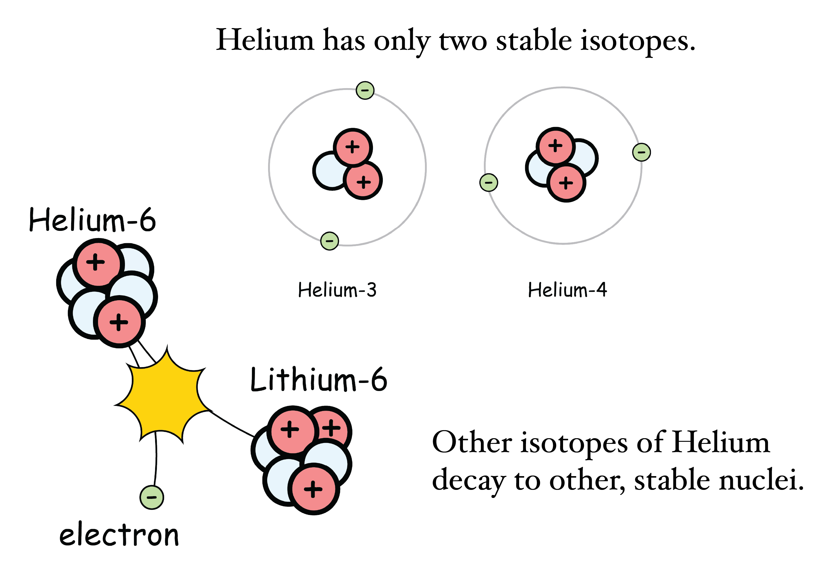 The same element can have different kinds of nuclei, that is, different isotopes. Helium has a number of variants, each with different numbers of neutrons. Above two neutrons, Helium is unstable to nuclear decay.